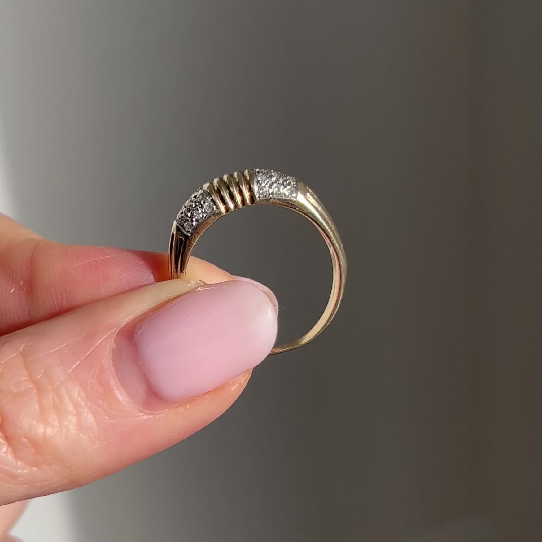 Vintage 9ct Gold and Pave Diamond Ridged Band Ring