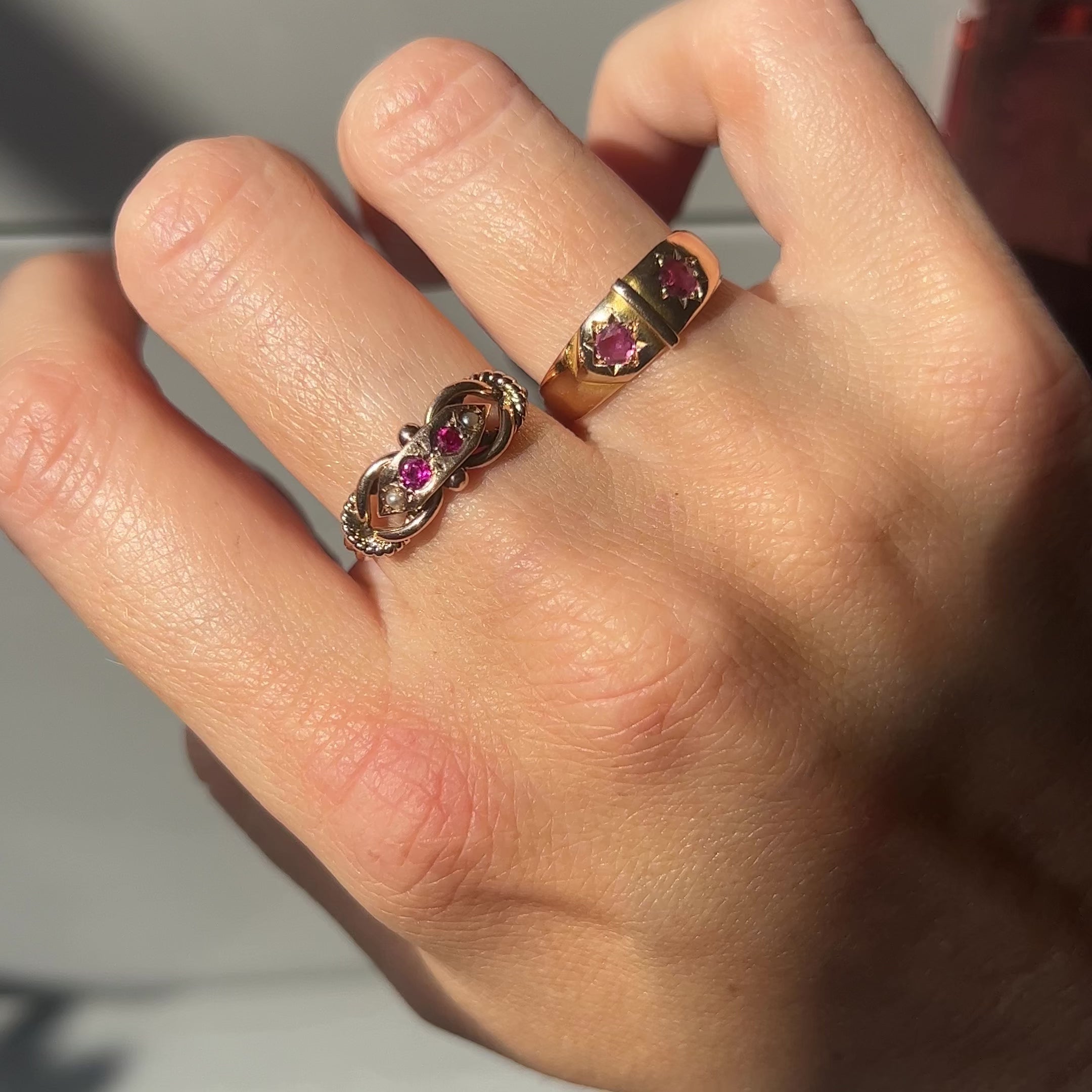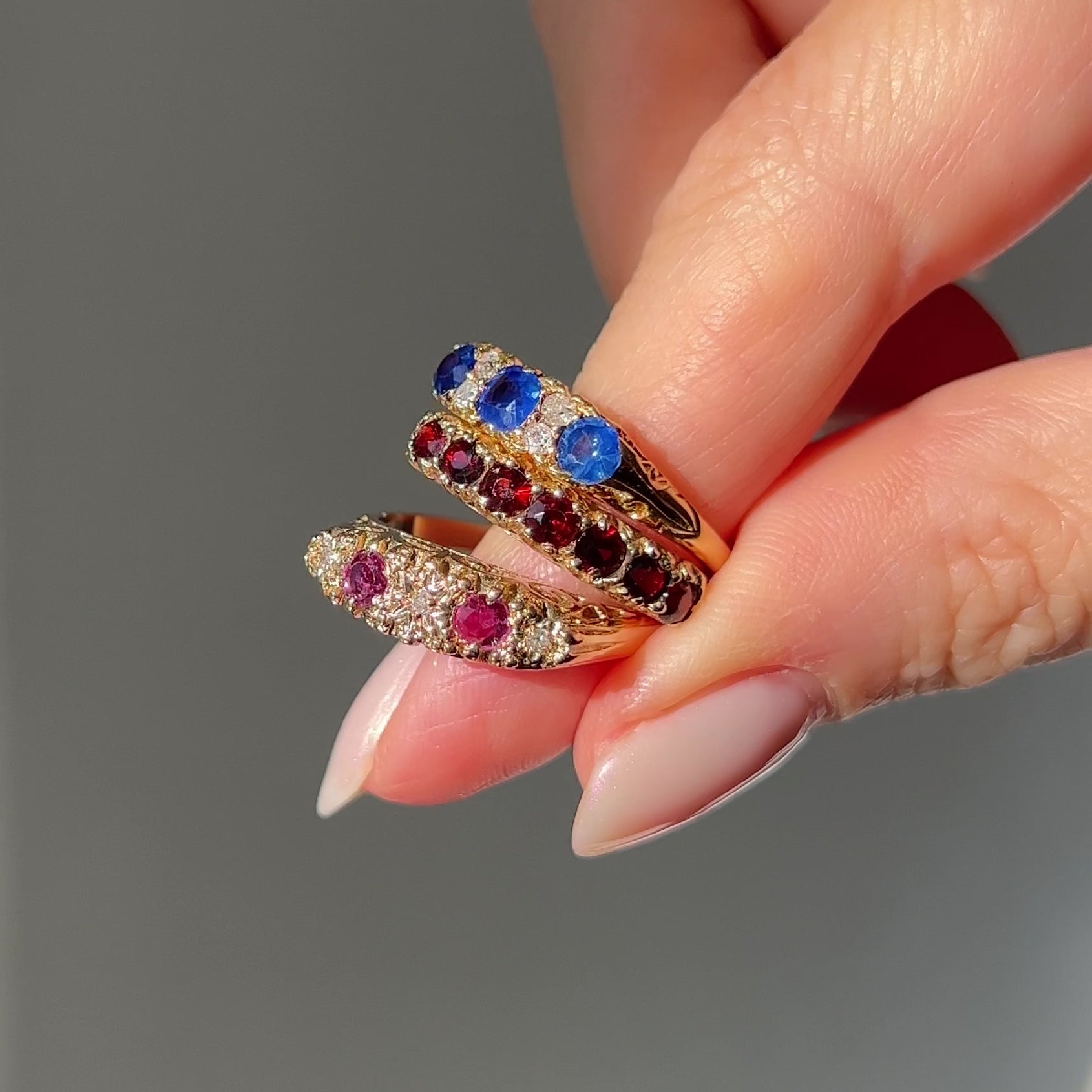 Antique Edwardian 9ct Gold with Star Set Diamond and Rubies
