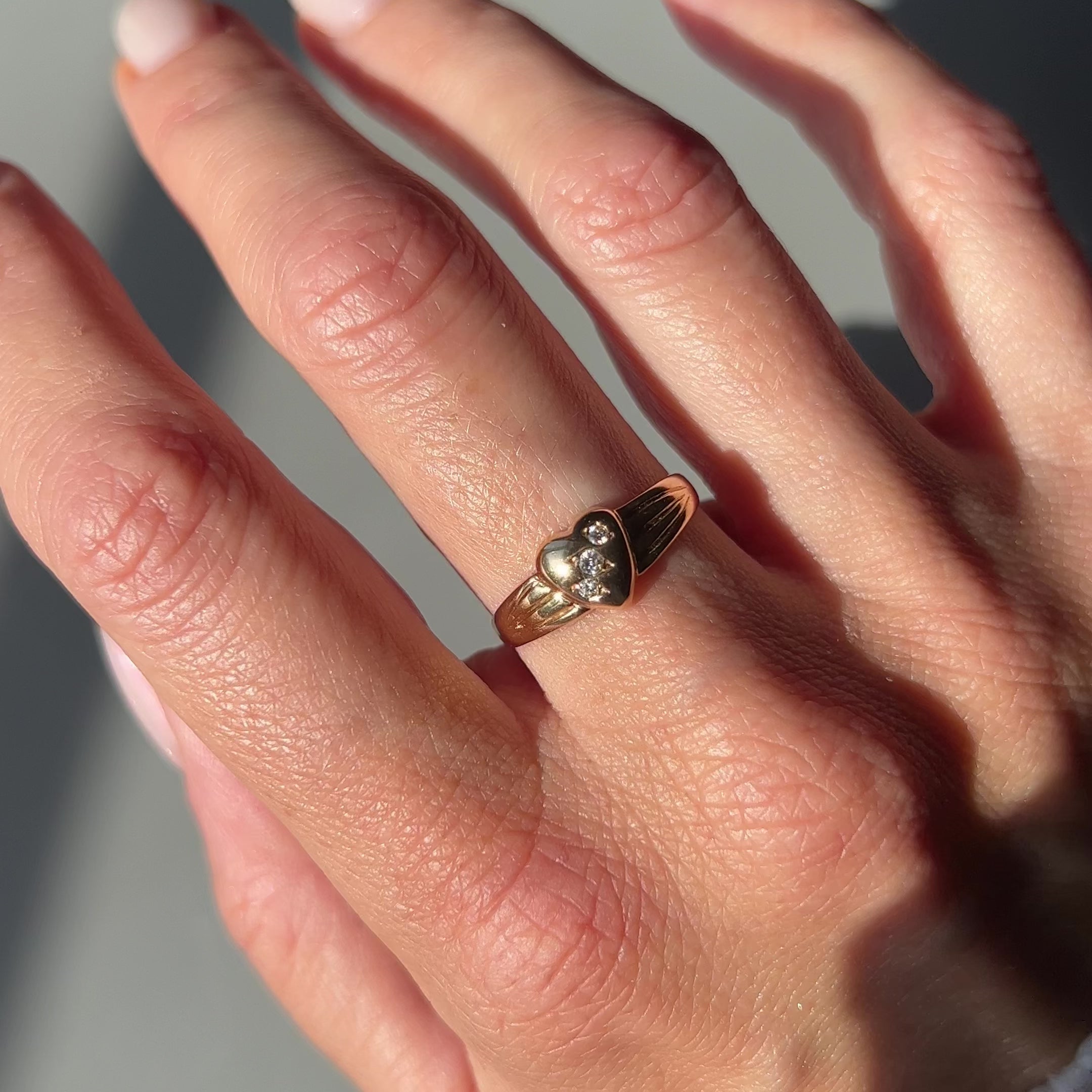 Antique 22ct Gold Heart Ring with 3 Diamonds