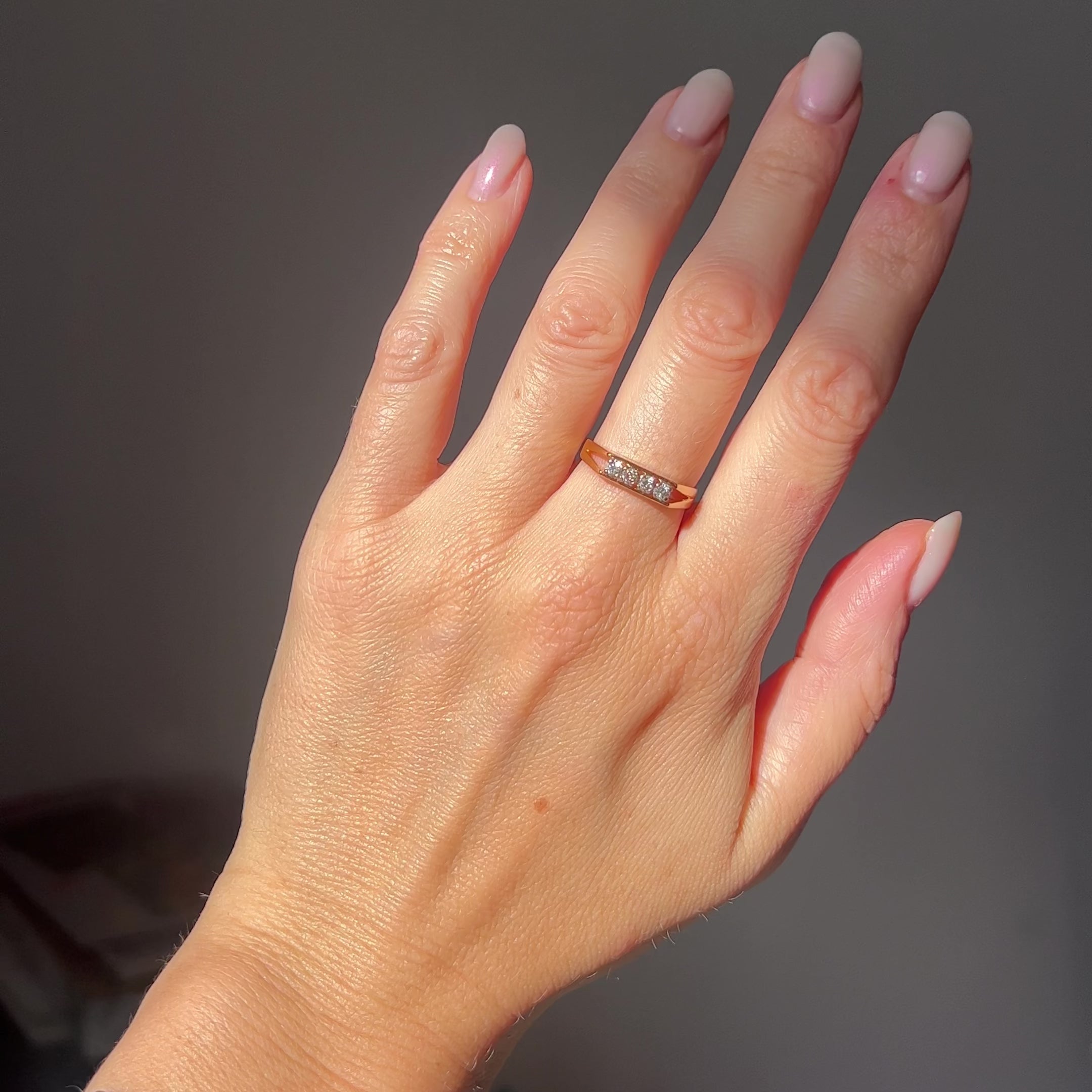 Antique Diamond 18ct Gold Carved 5 Stone Ring