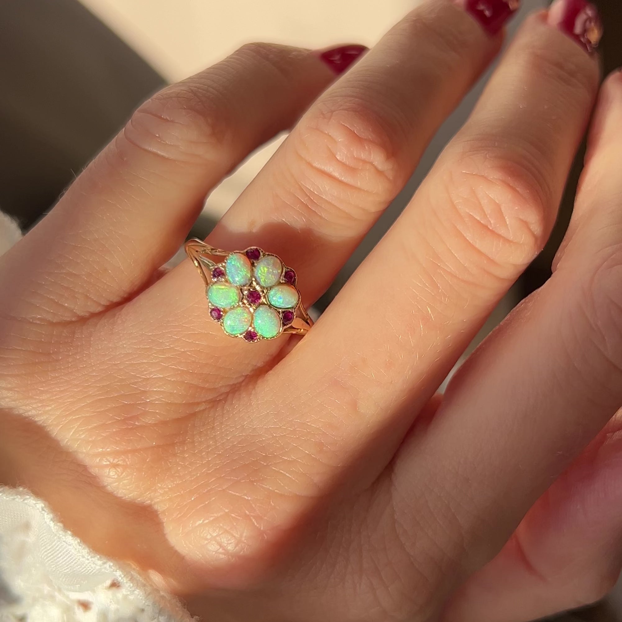 Opal and Ruby Floral Cluster Ring Sale price£590.00 GBP