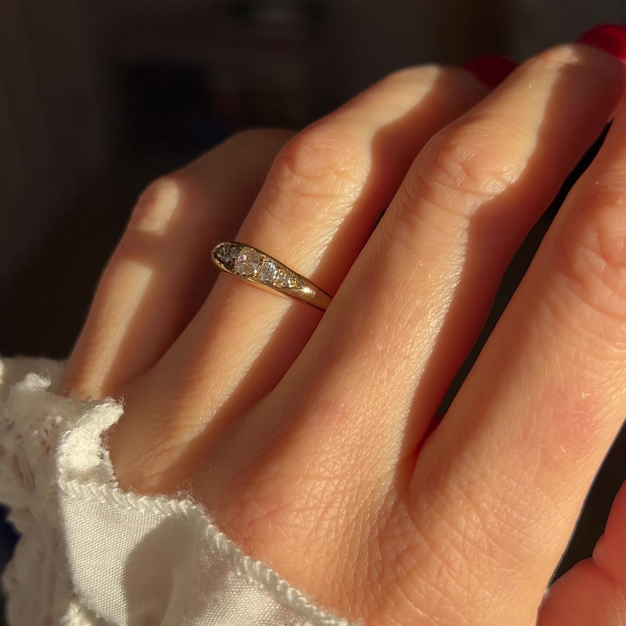 Sold outAntique Diamond 18ct Gold Carved 5 Stone RingAntique Diamond 18ct Gold Carved 5 Stone Ring