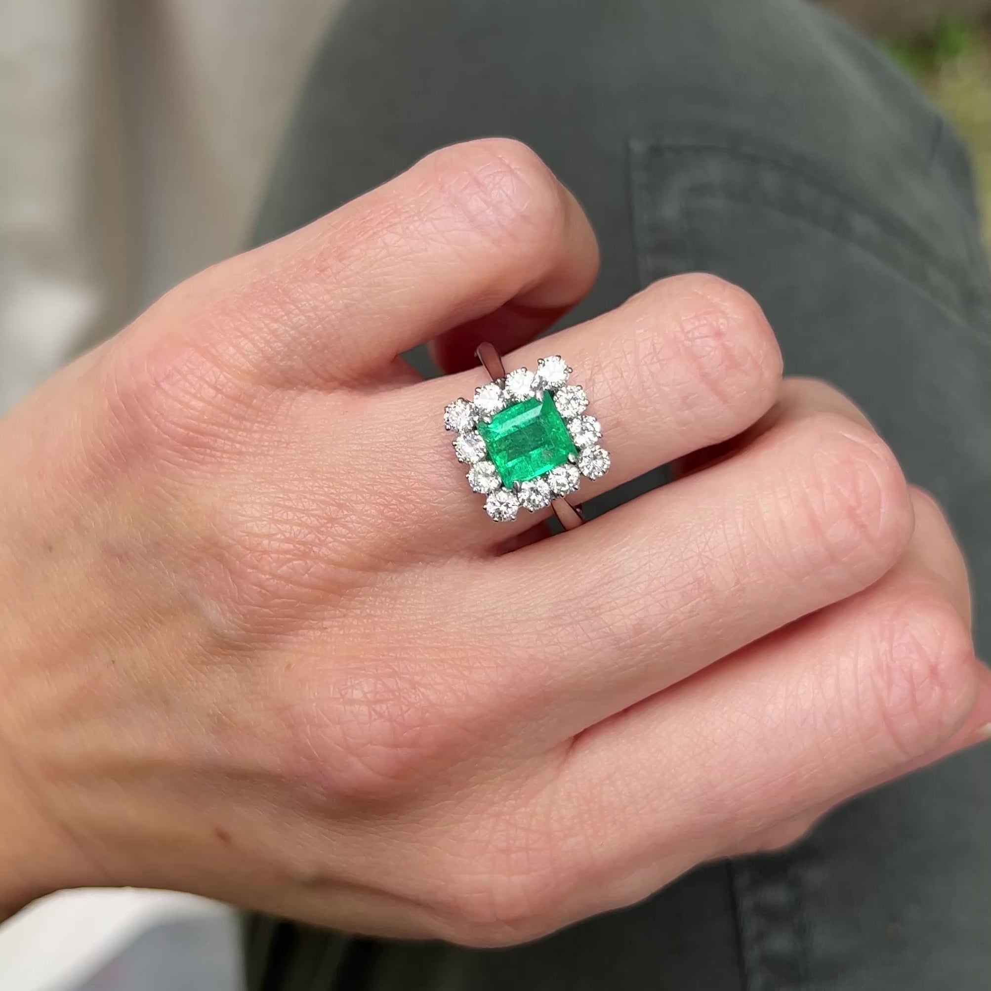 1.46ct Emerald and Diamond Square Cut Halo Ring