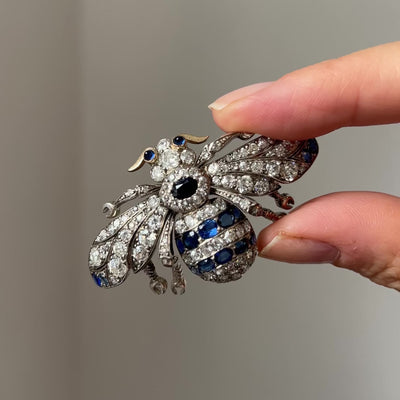 Antique Diamond and Sapphire Set Bee Brooch