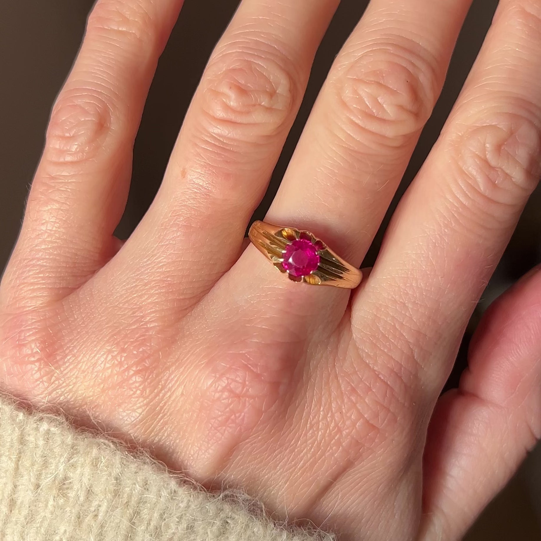 Antique Ruby 18ct Gold Gypsy Ring