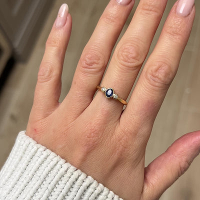 Antique Sapphire and Diamond 3 Stone Ring