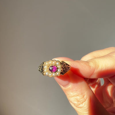 Antique Victorian Amethyst and Pearl Mourning Ring