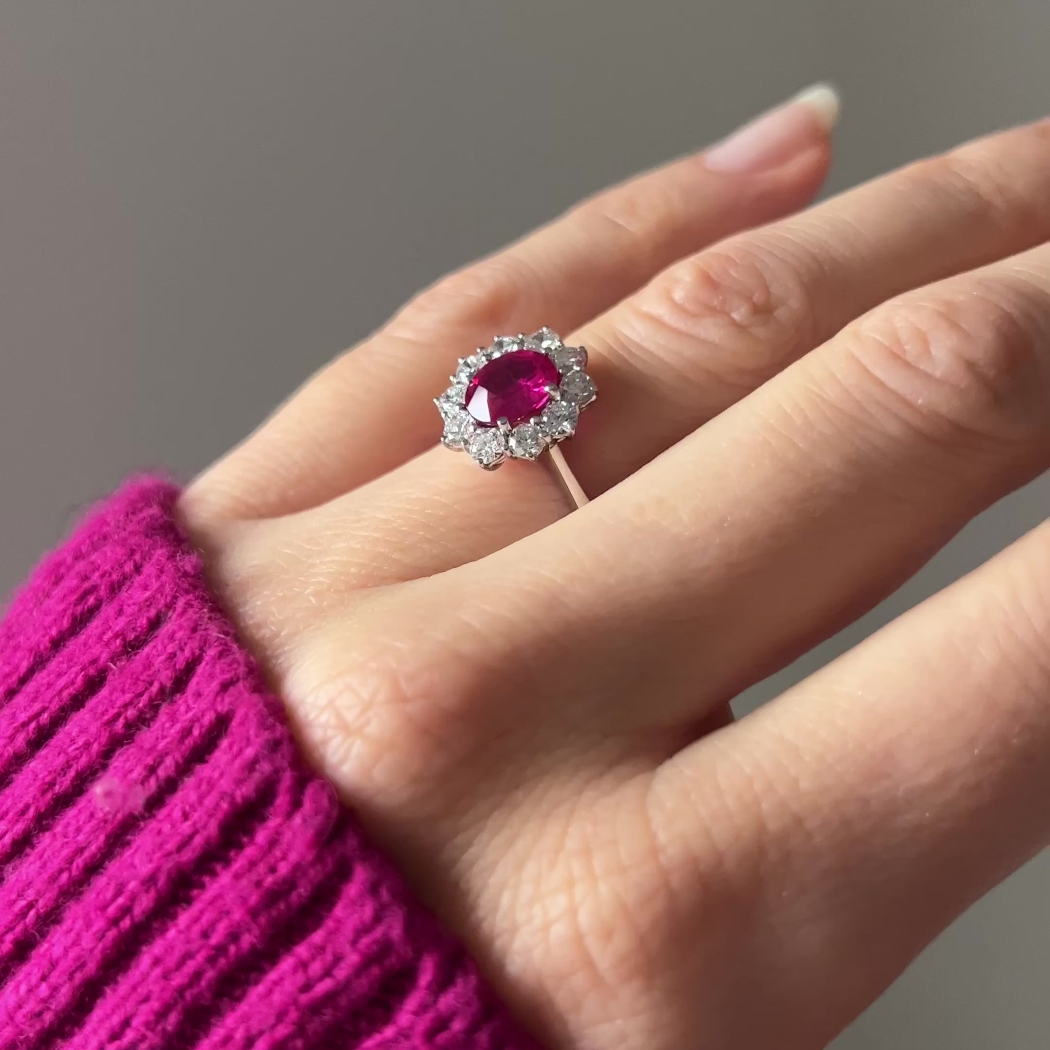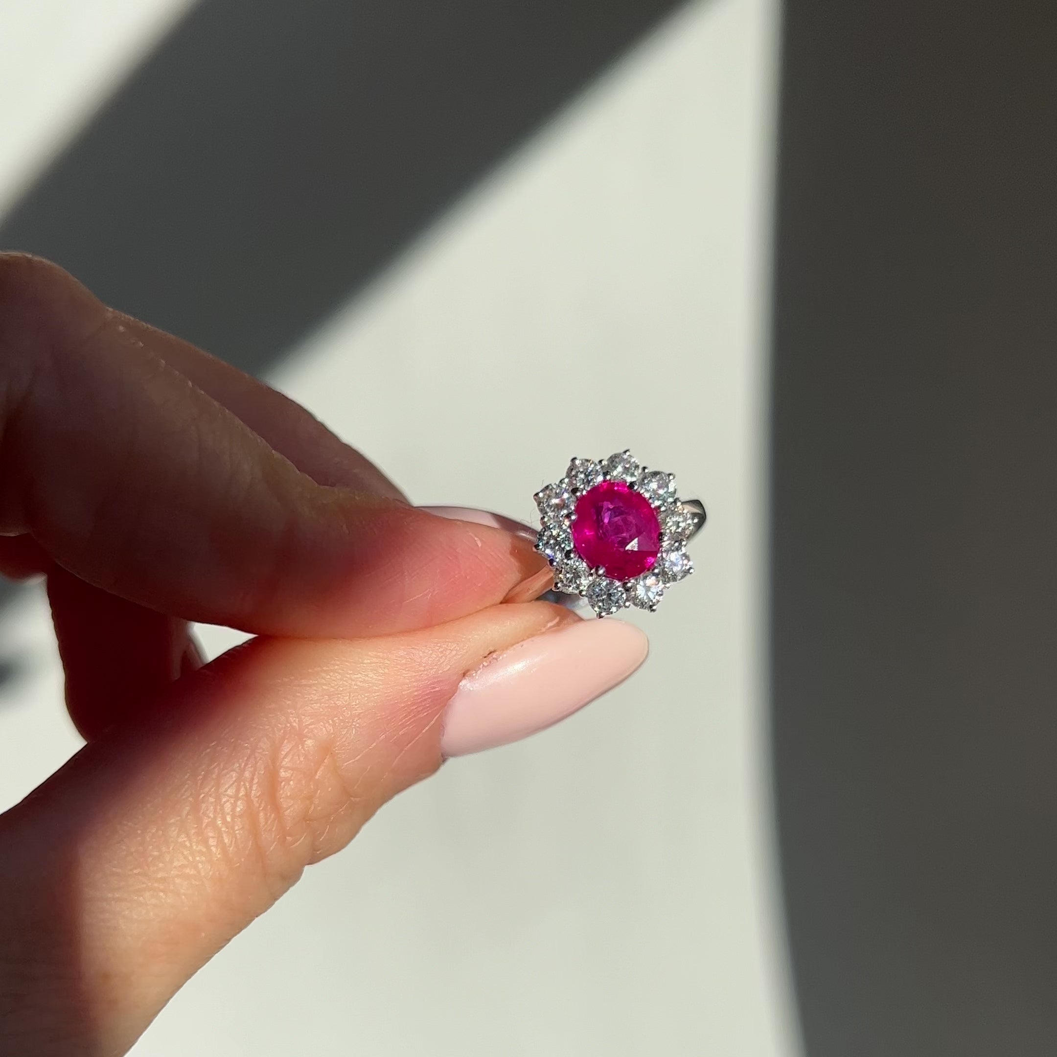 1.48ct Burma Ruby and Diamond Cluster Ring