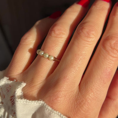 A super pretty pearl ring, featuring 4 pearls set in 9ct gold. It's vintage, from the 1980s and is deeply feminine and elegant.