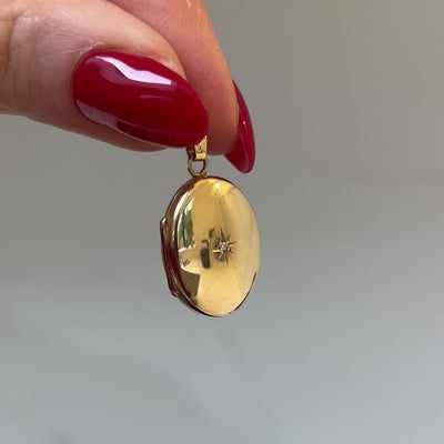 Vintage 9ct Oval Locket with Star Set Diamond