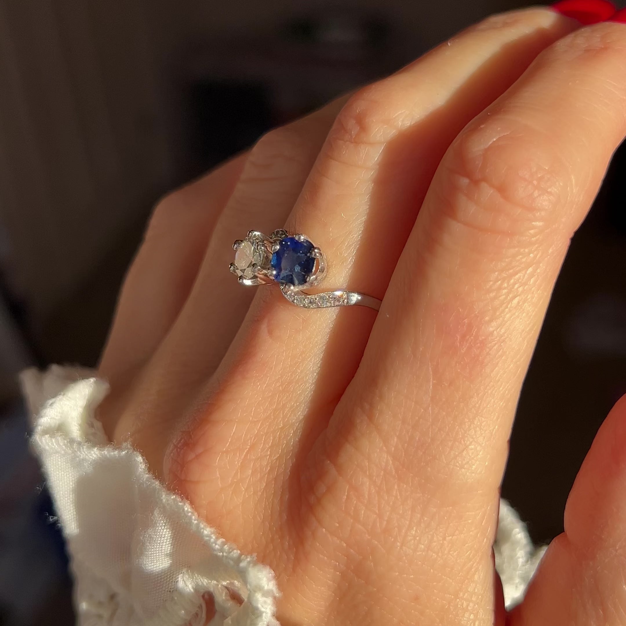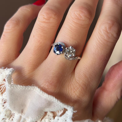 Vintage Sapphire and Diamond Toi et Moi